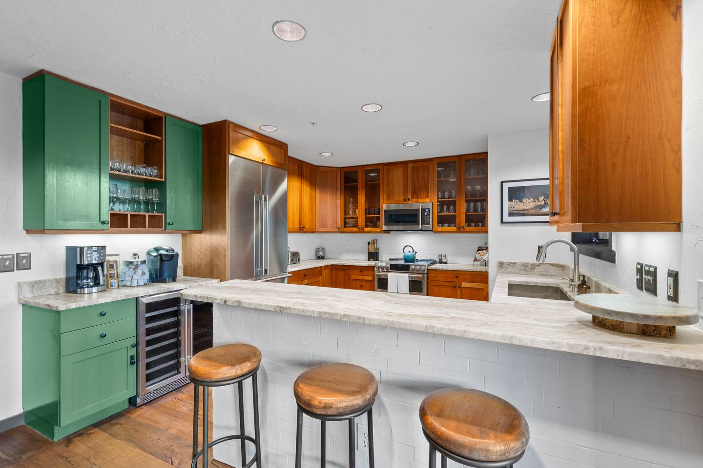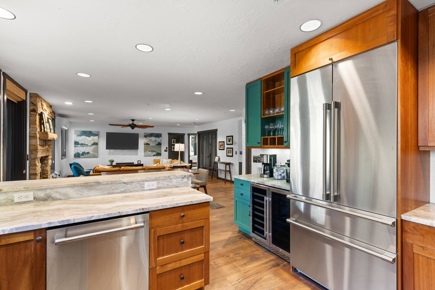 Welcome to Whiskey Ridge by Distilled Destinations! Nestled in the serene mountain landscape lies your next vacation spot, Whiskey Ridge. This upscale, spacious retreat, measuring a generous 1848 sq ft, is a special blend of comfort, luxury, and convenience. ✔ Four bedrooms, including two main suites with en-suite bathrooms, perfect for multiple families or groups ✔ A large open-concept kitchen, dining, and living area serve as the heart of the unit ✔ Remodeled with all-new furnishings, bathroom updates, and a fresh coat of paint. Air conditioning and all new windows added this year. ✔ Brand new high end appliances added in the kitchen this year ✔ Two private patios with an electric grill, two seating areas, and a beautiful Mountain View Experience the unique charm of this expansive unit and make your mountain getaway a memorable one. Beautiful walkable neighborhood with streams and walking trails. Whiskey Ridge offers four spacious bedrooms and three baths. Two bedrooms are main suites, each with their own en-suite for added privacy and convenience. The recent remodel adds a fresh, modern aesthetic to the space, featuring new bathroom tiles, stylish furnishings, and a fresh coat of paint. ✔ Enjoy the unit's large space, 1848 sq ft, a rare find among ski condos ✔ Multiple patio spaces provide ample opportunities for outdoor relaxation ✔ Grill a delicious meal on your private patio with the new grill and soak in the stunning Mountain View ✔ Easily accessible ground-level condo with a private entry in the courtyard ✔ Semi-private elevator from the underground heated garage for easy access ✔ Convenient ski rack right outside the condo door, and spacious mudroom for hats, coats, helmets and gloves During the ski season we offer a free ski loop shuttle if you’d prefer a ride to the base!
