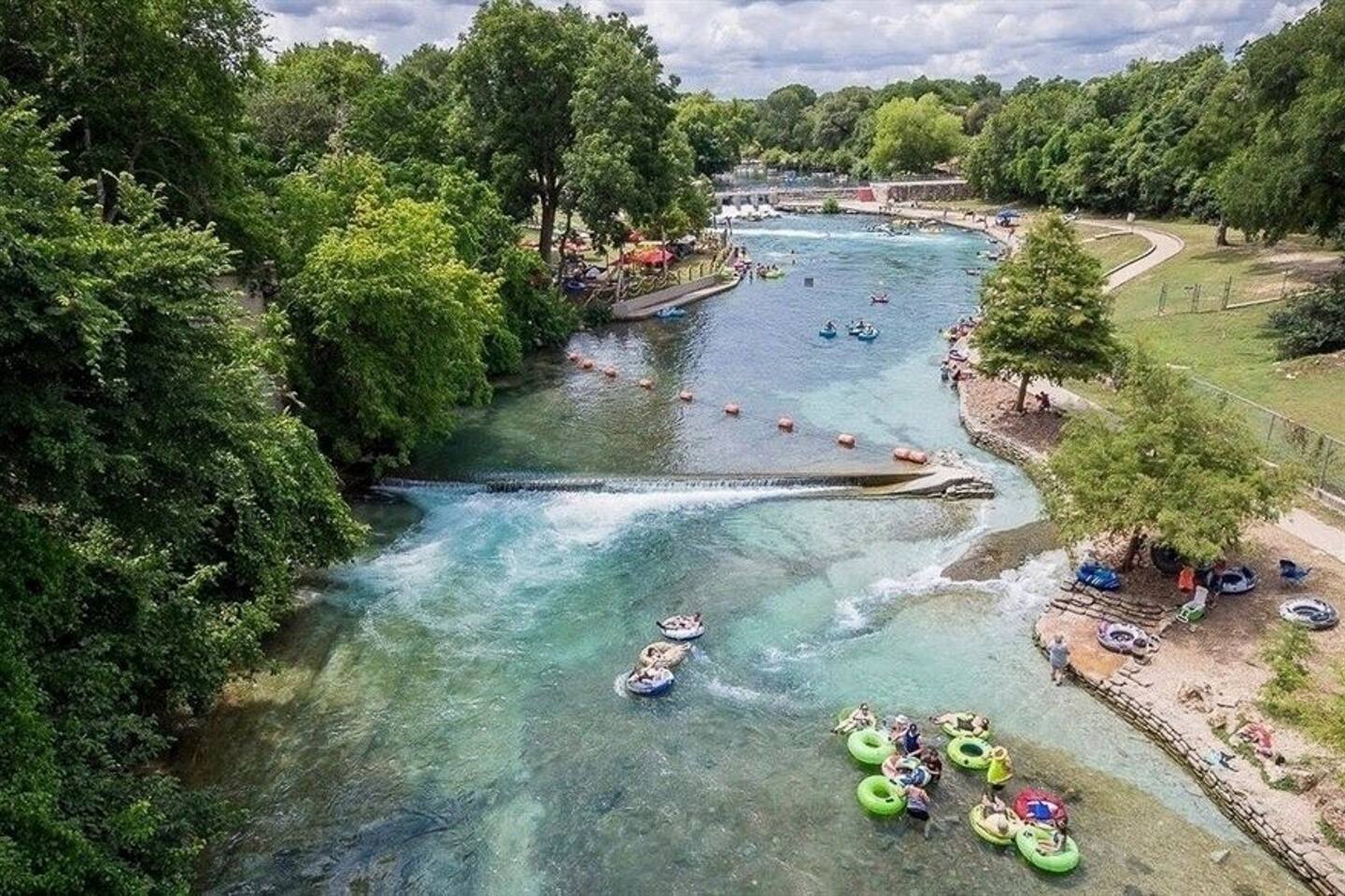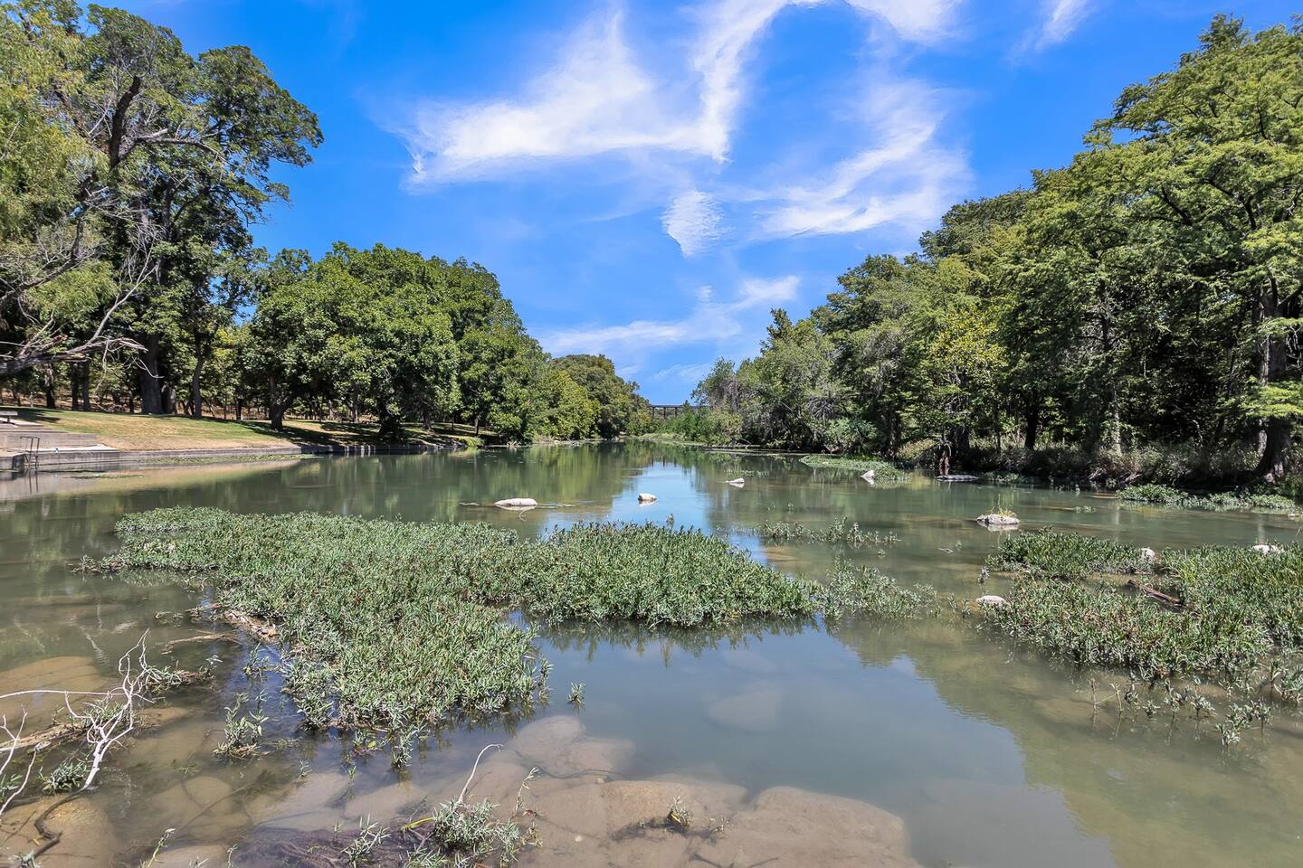 Welcome to Whiskey River, a celebration of Texas Music! NEW Luxe Condo Riverfront in Gruene, the New Braunfels historic district. Easy Walk to Gruene Hall. * New Luxury Decor * Riverfront! Grab your tubes and go. * Upscale Texas Music Theme * High end mattresses and bedding * Walk to Gruene Hall and all the shopping, restaurants * Next to Rockin R Tubes * Washer and Dryer * Two private parking spaces * 65” Smart TV in Living, 55” Smart TV in 2nd bedroom * Huge patio with dining and living