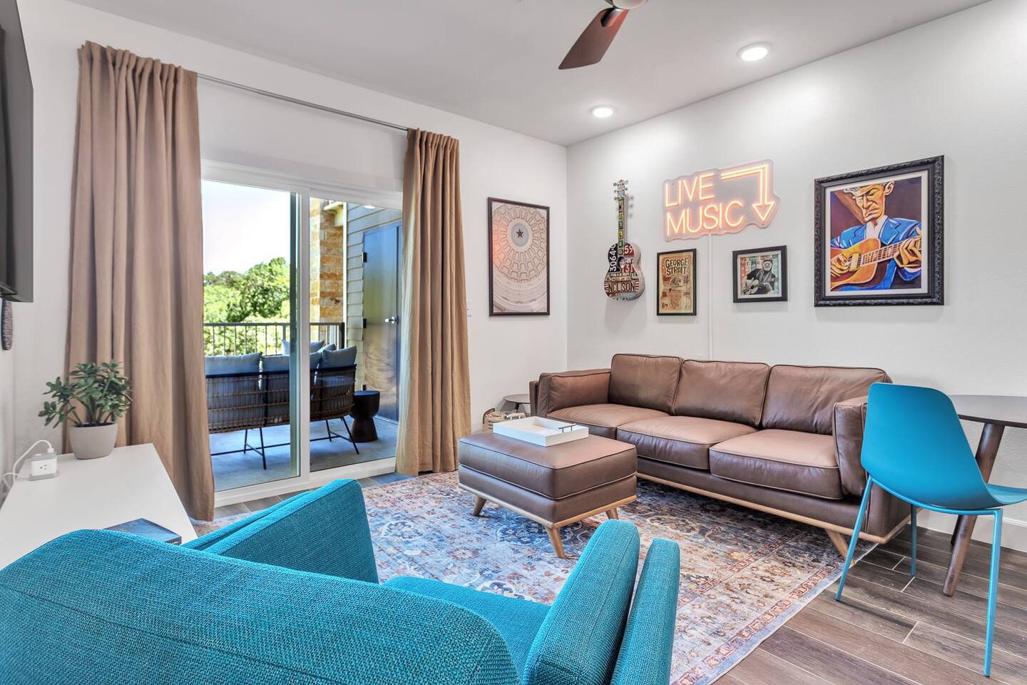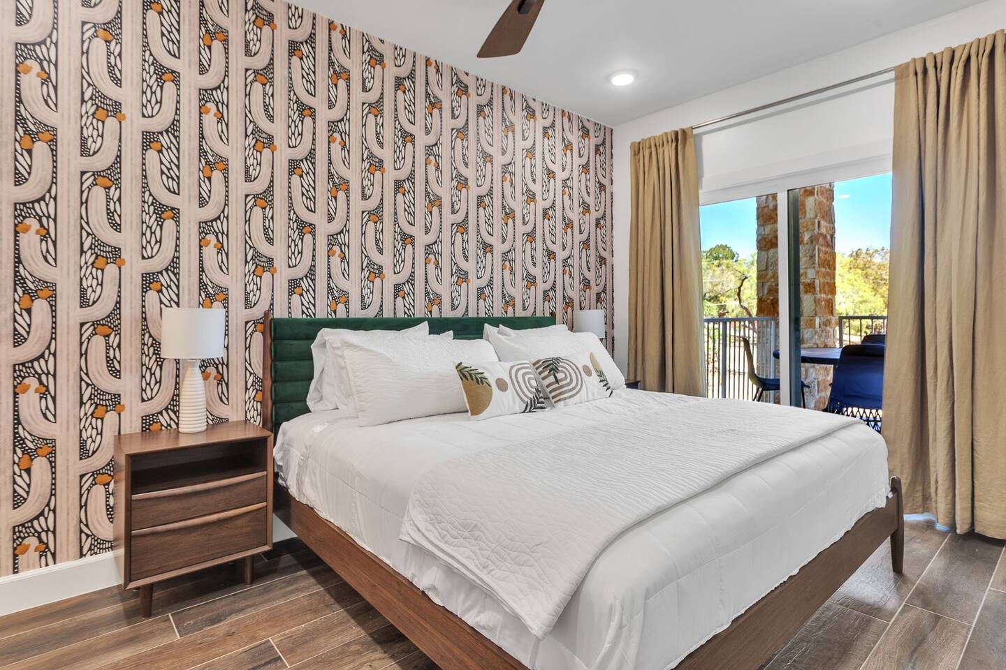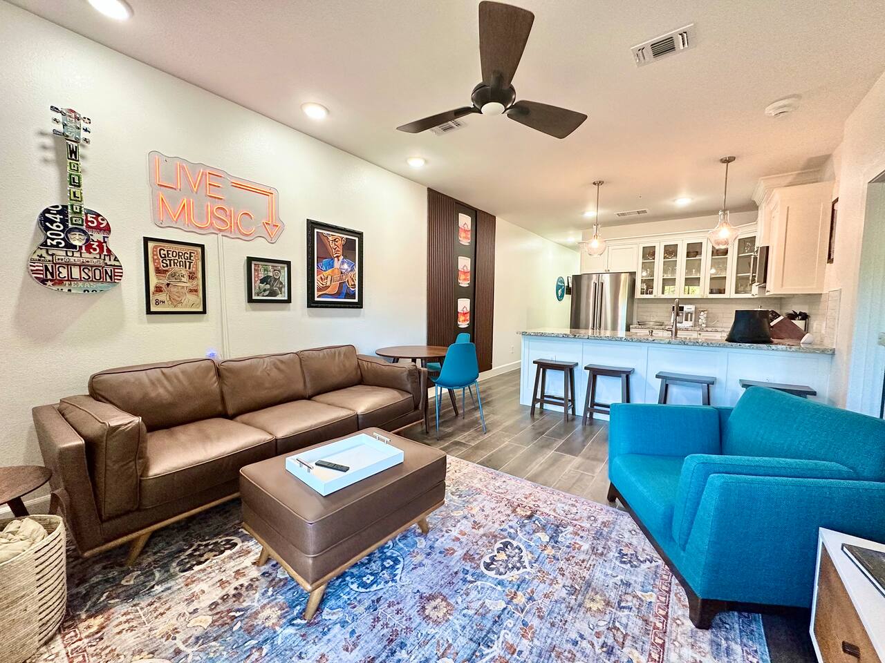 Welcome to Whiskey River by Distilled Destinations - your jumping off point for an incredible vacation in the Texas Hill Country! The concert lineup at Gruene Hall just keeps getting better and better - come stay and enjoy the close proximity to Gruene and the Guadalupe River. The brand new complex, finished in summer 2023, is beautiful, and this particular unit is incredible. We re-painted and professionally put together a Texas Music theme to go along with the Whiskey River title and Gruene Hall adjacent location! 3 bedrooms, 2 baths, and a completely stocked kitchen with everything you need. All new furniture with comfortable high end mattresses, linens, furniture and appliances. The artwork is particularly special - there is a custom made guitar from Texas license plates, an ode to Willie! High end appliances with an ice maker in the freezer. The space includes 3 bedrooms and 2 baths, and accommodates 6 nicely. The outdoor patio is not to be missed, with a large dining table, couch and chairs. Enjoy those Texas nights on your private patio! The condo is exactly 1/2 mile from Gruene Hall. Nice walk during the day, and plentiful Ubers if you’d prefer. There are also golf cart rentals in the area if you’d like. Check out our guidebook for details. Distilled Destinations will be your new choice for all your vacations - we have properties in several states. Check out all of our reviews on Airbnb - all guest favorite properties and all professionally managed by our Superhost! Thank you and enjoy!