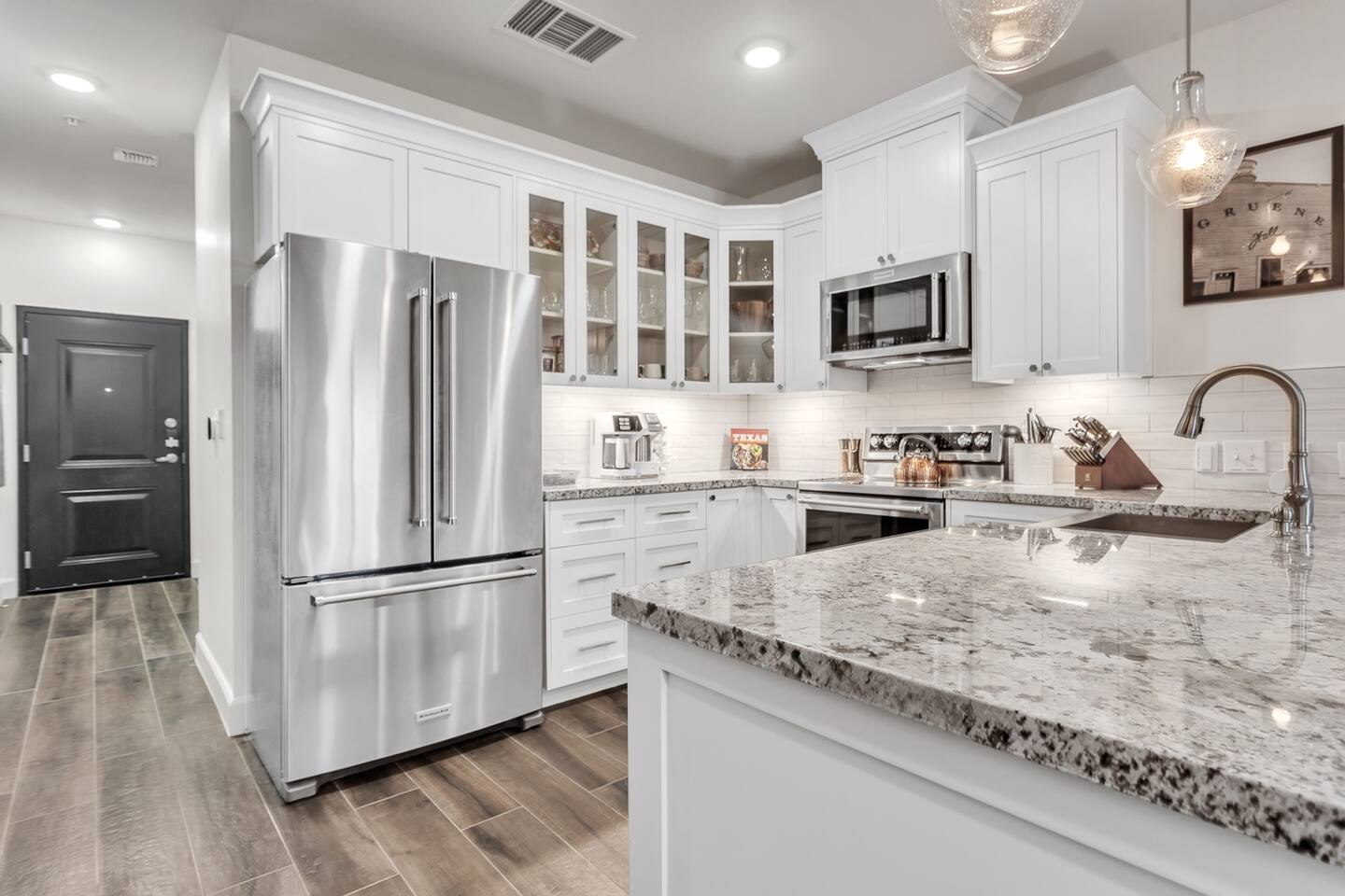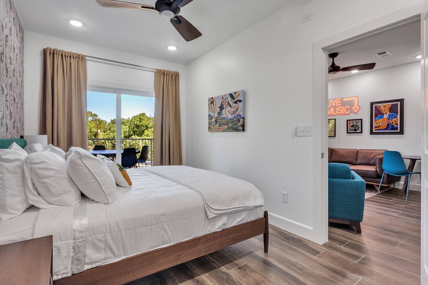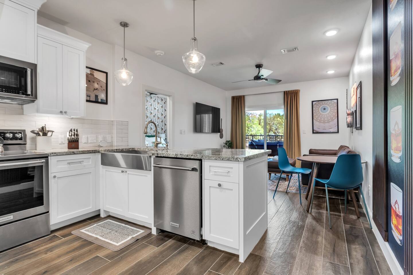 Welcome to Whiskey River by Distilled Destinations - your jumping off point for an incredible vacation in the Texas Hill Country! The concert lineup at Gruene Hall just keeps getting better and better - come stay and enjoy the close proximity to Gruene and the Guadalupe River. The brand new complex, finished in summer 2023, is beautiful, and this particular unit is incredible. We re-painted and professionally put together a Texas Music theme to go along with the Whiskey River title and Gruene Hall adjacent location! 3 bedrooms, 2 baths, and a completely stocked kitchen with everything you need. All new furniture with comfortable high end mattresses, linens, furniture and appliances. The artwork is particularly special - there is a custom made guitar from Texas license plates, an ode to Willie! High end appliances with an ice maker in the freezer. The space includes 3 bedrooms and 2 baths, and accommodates 6 nicely. The outdoor patio is not to be missed, with a large dining table, couch and chairs. Enjoy those Texas nights on your private patio! The condo is exactly 1/2 mile from Gruene Hall. Nice walk during the day, and plentiful Ubers if you’d prefer. There are also golf cart rentals in the area if you’d like. Check out our guidebook for details. Distilled Destinations will be your new choice for all your vacations - we have properties in several states. Check out all of our reviews on Airbnb - all guest favorite properties and all professionally managed by our Superhost! Thank you and enjoy!